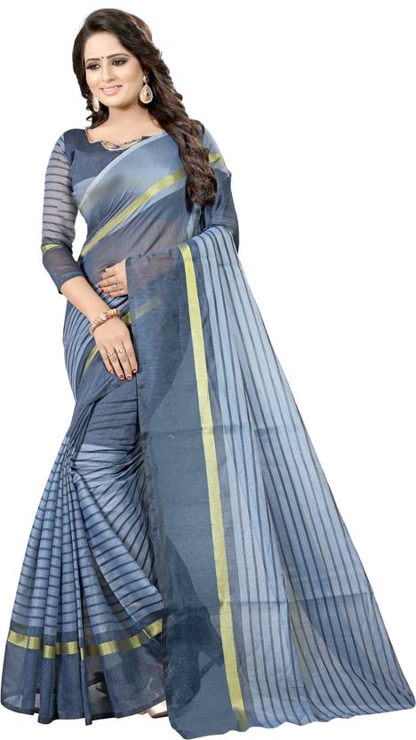 Striped Paithani Art Silk Saree (Grey)