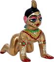 Neo Classic Radha Rani Hand Printed Idol I Bal Radha Rani Ji No. 3 Decorative Showpiece - 7.5 cm (Brass, Multicolor)