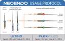 Ultimo Rotary Files are a special range of initial shaping instrument from Neoendo, providing better cutting efficiency and extended life because of special preheated NiTi material using a ultra-slow micro grinding process. Can be used in combination with Neoendo Flex Files by following the below-mentioned usage protocol -