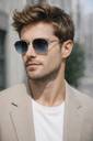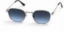 Lightweight metal-frame sunglasses with blue gradient UV-protected lenses, adjustable silicone nose pads, medium unisex fit, and comfortable all-day wear design.