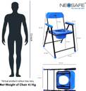 NEOSAFE Heavy Duty/ Mild Steel Foldable Shower Chair With Anti Slip Rubber Bush Commode Chair (Blue)