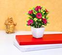 NERAPI Set of 2 Beautiful Wild Looking Pink Bonsai RoseFlower Perfect Decorative Piece| Pink Wild Flower Artificial Flower with Pot (6.5 cm, Pack of 2, Flower with Basket)