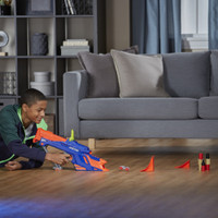 Gift your child this Nerf Nitro Motor Fury Rapid Rally Stunt Set and let them design and execute various stunts using foam cars. Your child can perform car-blasting actions, and it features 12 obstacles, a blaster, nine foam cars with plastic wheels, 12 obstacles, a high-jump ramp, a long-jump ramp, and instructions.