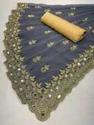 Sporting a self-design pattern, this women's Bollywood saree captivates with its intricate details and mesmerising aesthetics. And, boasting delicate embroidery and mirror work, this saree adds a touch of sophistication to any occasion. Moreover, with Bollywood style, this saree exudes elegance and glamour. This way, you can add a touch of Bollywood glamour to your wardrobe and unleash your inner diva with every step you take.