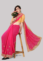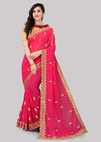 NERTA BOUTIQUE Self Design, Embroidered Bollywood Georgette Saree (Pink)