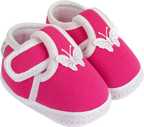 Neska Moda 3 To 12 Months Baby Girls & Baby Boys Soft Cotton Cute Butterfly Booties (Toe to Heel Length - 12 cm, White, Pink)