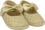 Neska Moda 6 To 12 Months Baby Girls Belly Shoe Fancy Partywear Bow Baby Sandal Velcro Booties (Toe to Heel Length - 12 cm, Gold)