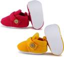 Neska Moda Set Of 2 Pair Baby Boys & Baby Girls 6 To 12 Months Velvet Velcro Booties (Toe to Heel Length - 12 cm, Rani, Yellow)