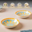 Nestasia Ceramic Serving Bowl Blue and Orange Floral Set of 4 Round Ceramic Plate For Snacks (Pack of 4, Orange, Blue)
