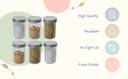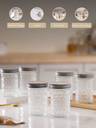 Keep your kitchen space tidy and organized with our glass storage jars. Made from non-toxic, lead-free food-grade glass, this set of 4 jars is perfect for securely storing a variety of pantry essentials. Enhanced with a durable tin lid and an acrylic interior, these airtight jars ensure prolonged freshness for your contents. Featuring raised ring designs from top to bottom, they seamlessly combine style and functionality. The thick glass construction, along with the airtight seal, makes these jars a must-have for culinary enthusiasts and snack lovers alike. Plus, the clear glass surface allows for easy visibility of your food items, helping you distinguish between all the essentials in your kitchen.