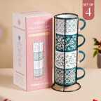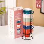 Nestasia Pack of 6 Ceramic Stackable Mini Expresso Cup Set Of 6 Kaori Sunset Hues (Multicolor, Cup Set)