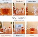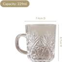 Design: Crafted from high-quality, lead-free glass, this cup set of 6 offers lasting clarity and durability. The embossed diamond-cut detailing creates a striking texture, catching light beautifully to make every sip look special. Designed with a sleek ergonomic handle, these coffee mugs balance style with comfort. Transparent yet bold, they bring a refined charm to your coffee glassware collection.