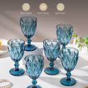 The set of 6 antique design blue stemmed glasses will amaze your visitors. The drinkware set is not only beautiful but also durable, made with high-quality glass material. The glasses can be used to serve sherbets, wines, juices, or other beverages. Serve your guests in these glasses to impress them. The color of the glass, together with its unique appearance, may give any table setting a magical appearance. Our glassware collection would never let you down! The set of glassware can also be an amazing gift for those who love drinkware and tableware collections.