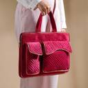 The designer laptop bag is here to protect your gadget with a style statement. The cushioned and quilted build of the laptop sleeve protects the laptop against bumps and scratches while on the go. The laptop bag features a vibrant maroon colour that beautifully contrasts the lustrous gold piping of the laptop bag. Equipped with sturdy handles, the utility of the laptop increases with its external pockets. The external pockets have been designed with magnetic closures for easier storage and access to essentials.