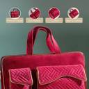 Nestasia Sleek Quilted Lightweight Zippered Velvet Laptop Bag for 14 Inch Laptops Messenger Bag (Pink, Gold, 14.17 inch)