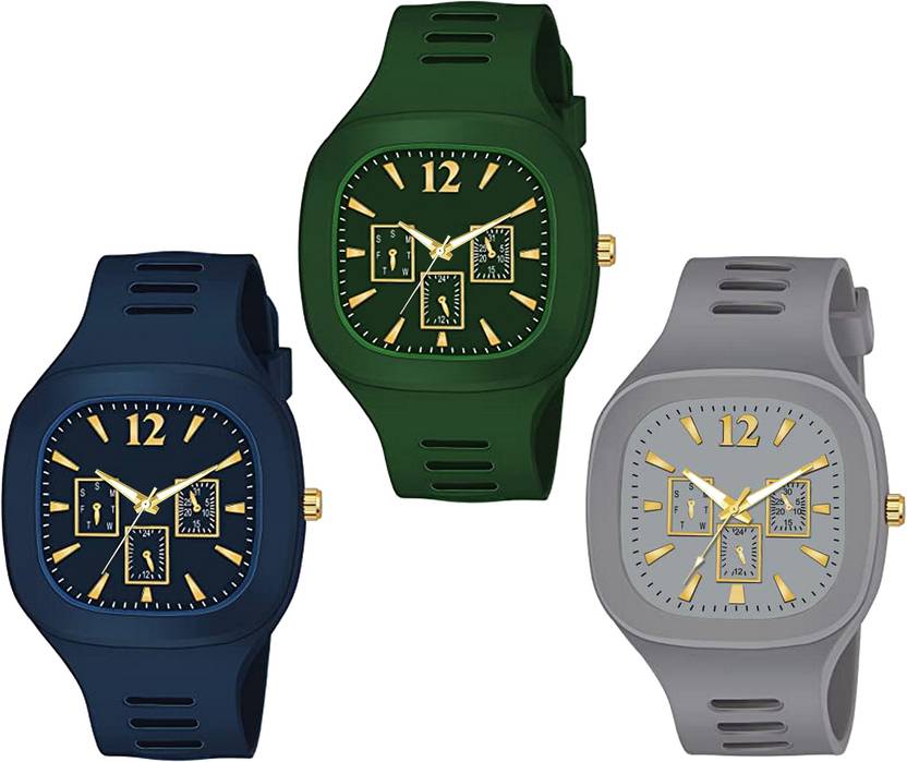 Combo Of 3 Square Dial Silicone Strap