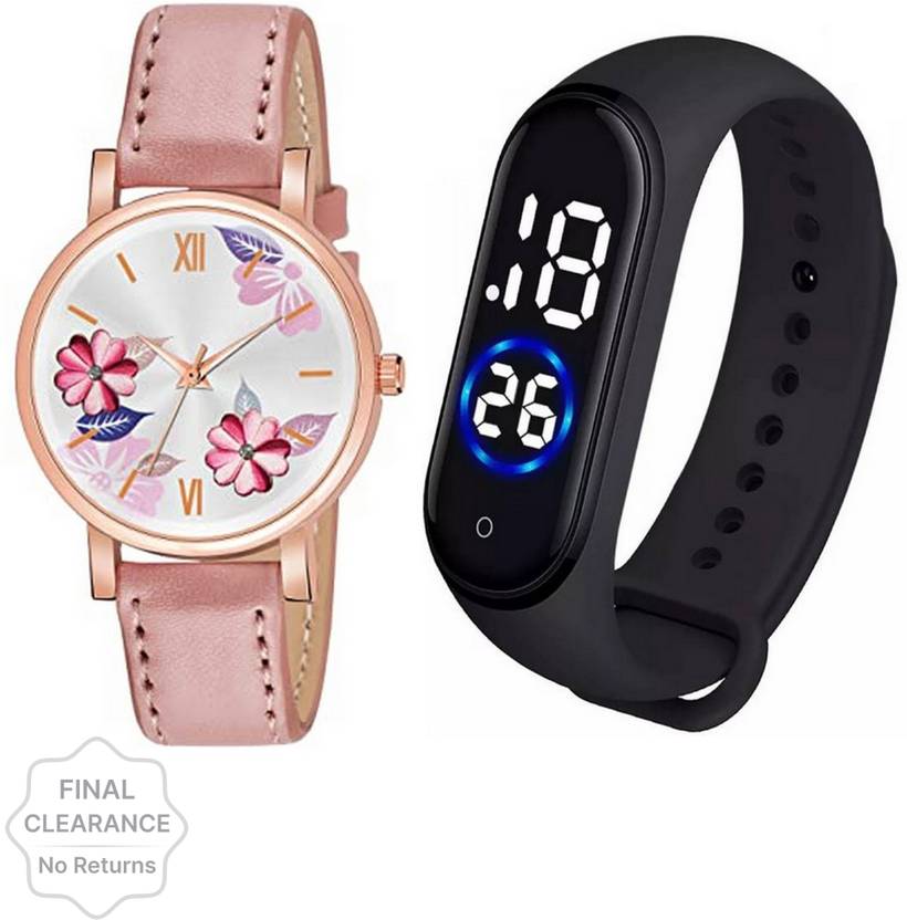 Pack of 2 Flowered Designer Premium Leather Strap Analog Watch for girls & women