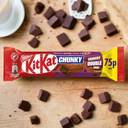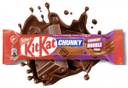 Ingredients | - The KitKat Chunky Crunchy Double Chocolate bar contains: sugar, vegetable fats (palm, shea), wheat flour, skimmed milk powder, cocoa butter, cocoa mass, whey powder product (milk), glucose syrup, fat-reduced cocoa powder, butterfat (milk), rice flour, sunflower oil, emulsifier (lecithins), raising agent (sodium bicarbonate), and flavoring. It may also contain traces of peanuts and nuts.