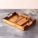 nestroots Wooden Serving Tray & Napkin Holder Combo for Dining Table | Tissue Paper Holder with Tray Gifts ( Black ) Tray (Pack of 2)
