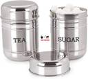 netizen Stainless Steel Tea Coffee & Sugar Container - 800 ml (Pack of 2, Silver)
