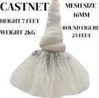 Featuring a pocket net structure with a height of up to 2.1336 m (7) and a round coverage of up to 7.62 m (25), this fishing net enables efficient casting over a wide area. The mesh size of up to 16 mm is suitable for capturing small to medium fish while allowing water to pass through easily. In addition, its handmade precision ensures accuracy during casting and enhances durability for repeated use. The anti-tangle design contributes to smooth casting and retrieval, reducing interruptions while fishing.