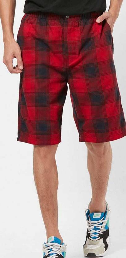 Checkered Men Red Bermuda Shorts