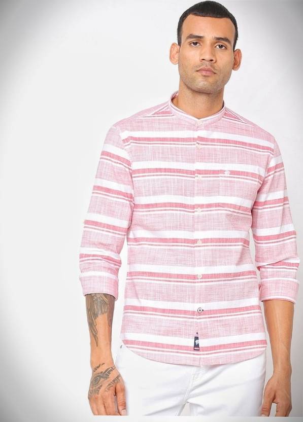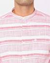 RELIANCE BRAND SHIRT NETPLAY STRIPED BAND COLLAR WHITE AND PINK STANDARD PREMIUM SLUB COTTON SHIRT STANDARD SIZE 39 CM SMALL SIZE SHIRT