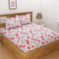 Netroad Cotton Double Flat 140 TC Striped Bedsheet (Pack of 1, White)