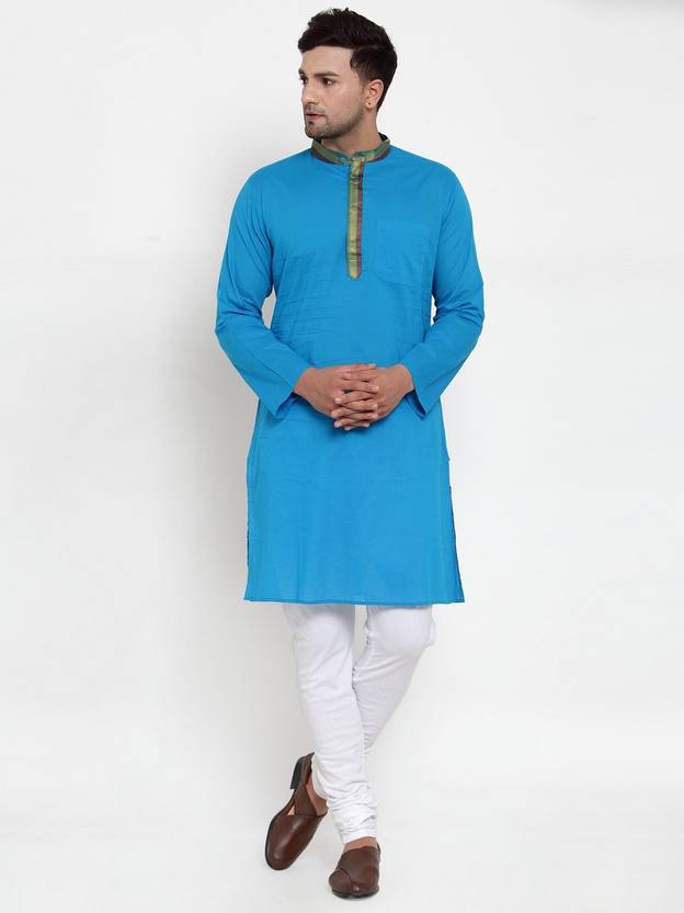 Men Solid Pure Cotton A-line Kurta (Blue)