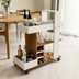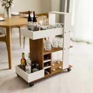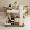 Elevate your entertaining game with this stylish Barista Bar Trolley from neuspace. Featuring a sophisticated combination of white and teak wood finish, this mobile bar cart brings both functionality and aesthetic appeal to your living space. The thoughtfully designed structure, measuring 72 cm in height, 31.5 cm in width, and 14 cm in depth, offers multiple storage levels for your beverages, glassware, and bar accessories. The contrasting white panels and warm teak shelving create an elegant modern look, while the wheeled base provides convenient mobility for serving guests. The cart's compact dimensions make it perfect for both intimate gatherings and larger parties, fitting seamlessly into any room setting. The multiple compartments and shelves are ideally sized for storing bottles, mixers, and barware, keeping everything organised and within easy reach. Whether used as a coffee station or cocktail cart, this versatile piece combines practicality with contemporary design.