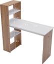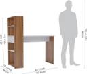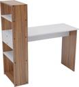 Transform your workspace with this sophisticated Neuspace Vista computer desk, featuring a thoughtfully designed combination of Leon Teak wood finish and crisp white accents. The spacious 112.5 cm x 48 cm desktop provides ample room for your laptop, monitors, and work materials, while the integrated storage solution includes multiple shelves perfect for organizing books, files, and office essentials. Standing at 133 cm tall, this desk maximises vertical space with its intelligent shelf arrangement, offering varying compartment heights of 20 cm, 22 cm, and 34 cm to accommodate different storage needs. The engineered wood construction ensures durability and stability, making it ideal for both home office setups and student study areas. The contemporary design seamlessly blends functionality with style, featuring clean lines and a modern aesthetic that complements any interior décor. Whether you're working from home, studying, or need a dedicated space for your computer setup, this desk delivers both practicality and visual appeal in one elegant package.