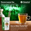 These thyme leaves can be used in tea infusions or to enhance the flavour of Italian sauces, salad dressings, sauteed vegetables, pasta, bread, pizza, buns, and more. As a result, you can explore a range of culinary creations, from savoury dishes to delightful desserts.