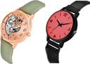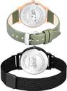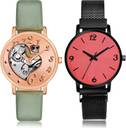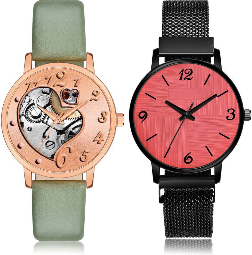 Dial Colour : Rose Gold And Red ; Band Colour : Green And Black ; Case Shape : Round ; Band Material : Genuine Leather And Metal ; Case Diameter : 34 And 32 mm ; NEUTRON Classical Tread Love Heart And Magnet Chain Green And Black Colour Analog Genuine Leather And Metal Belt 2 Watch Combo For Women And Girls - GM373-GM226