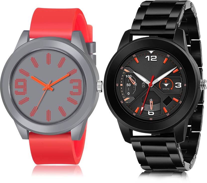 Dial Colour : Grey And Black ; Band Colour : Red And Black ; Case Shape : Round ; Band Material : Resin And Stainless Steel ; Case Diameter : 48 And 47 mm ; NEUTRON Contemporary Collegian Sports And Black Chain Red And Black Colour Analog Resin And Stainless Steel Belt 2 Watch Combo For Boys And Men - BM101-(40-S-20)