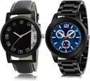 Dial Colour : Black And Blue ; Band Colour : Black ; Case Shape : Round ; Band Material : Genuine Leather And Stainless Steel ; Case Diameter : 36 And 47 mm ; NEUTRON Latest Chronograph Sports And Black Chain Black Colour Analog Genuine Leather And Stainless Steel Belt 2 Watch Combo For Boys And Men - B38-(71-S-20)