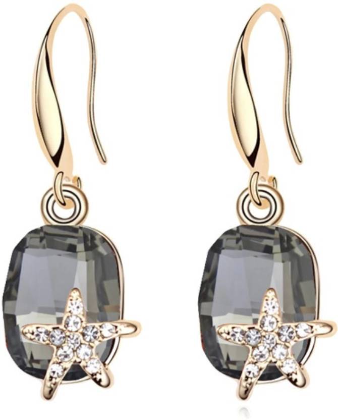 GIFT FOR HER! - Ideal Valentine, Birthday, Anniversary gift for someone you LOVE . Gift Wrap and Message can be instructed at the checkout., Quality - Made with Swarovski Crystals and has Champaign Gold plating., AUTHENTICITY- Item comes with Crystals from Swarovski Tag, which serves as a proof of authenticity., SKIN FRIENDLY- Nickel free and Lead free as per International Standards., Size - Width of the earring is 1.3 cm and Height is 3.7 cm. Weight is 12.6 grams.