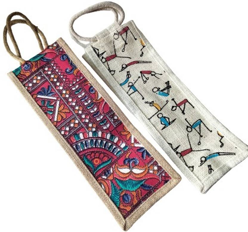 Eco Friendly Jute Material, Washable, Reusable, Daily Use watter bottle Carry Bag