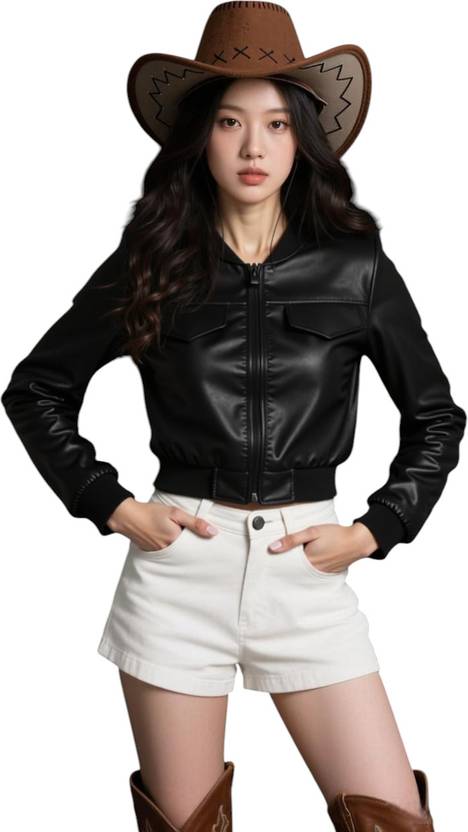 Bring out your bold and stylish side with this Black PU Leather Jacket for Women. Crafted from premium quality faux leather, this biker style jacket is perfect for your winter outings, parties, and casual street looks. Its zip front closure, ribbed cuffs, and waist-length cropped fit give you that perfect edgy vibe. Pair it with jeans, skirts, or dresses to elevate your entire outfit.