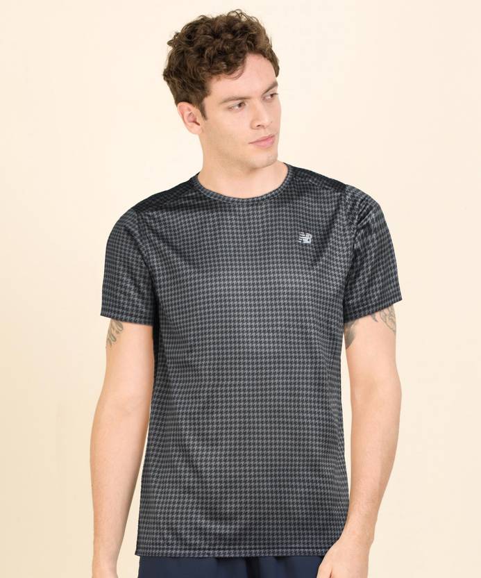 New Balance Geometric Print Men Round Neck Black T-Shirt