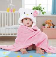 New Born Procare Cartoon Crib Hooded Baby Blanket for AC Room (Microfiber, Beige)