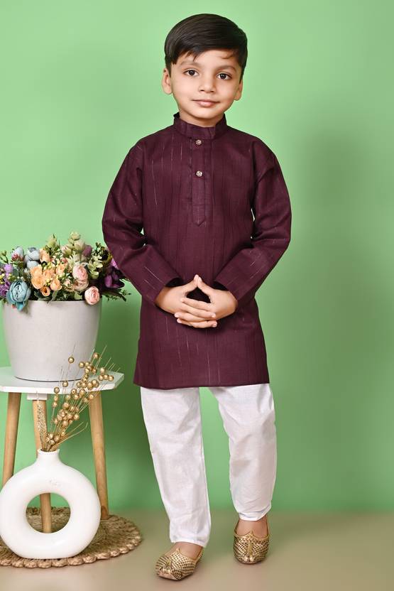 New Ekta Dresses Boys Festive & Party Kurta and Pyjama Set (Purple Pack of 1)
