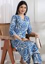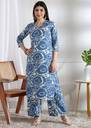 Fabric: Premium Rayon – soft, breathable & lightweight, Print: All-over geometric print, Neckline: V-Neck, Sleeves: 3/4th sleeves, Style: Straight-fit Kurta with matching Plazzo, Available Sizes: S, M, L, XL, XXL, Occasion: Suitable for daily wear, office, and casual events