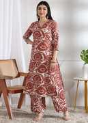 Elevate your ethnic style with this elegant printed kurta set crafted from soft and breathable rayon fabric. Featuring a stunning floral print, this Ethnic-Set includes a straight-fit kurta with a stylish V-neck and 3/4th sleeves, paired with comfortable matching Plazzo. Ideal for casual outings, office wear, or festive gatherings, this kurta set brings together style and comfort in one charming ensemble.