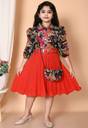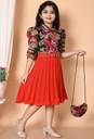 NEW FARIHA GERMENTS Girls Midi/Knee Length Festive/Wedding Dress (Red, Short Sleeve)