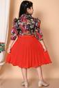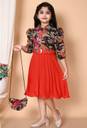 Girls Midi/Knee Length Festive/Wedding Dress (Red, Short Sleeve)
