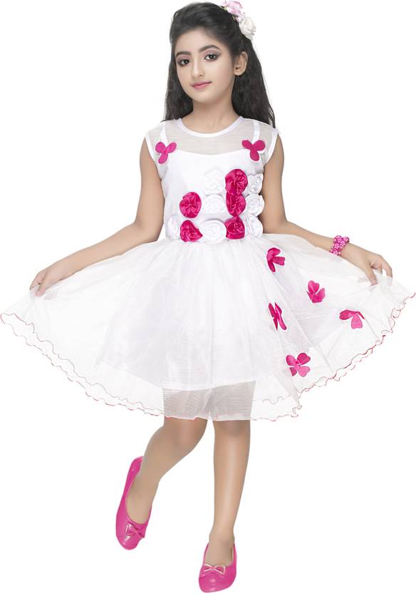 new gen Indi Girls Midi/Knee Length Party Dress (White, Sleeveless)