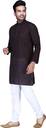 Men Self Design Cotton Silk Straight Kurta (Black)
