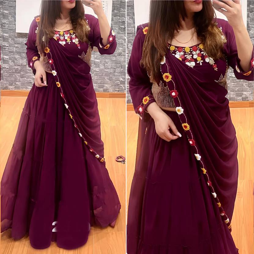 Lehenga Fabric : Georgette || Size & Fit :- Lehenga Length: 45" * Waist : Adjustable upto 42" * Lehenga Flair : 4 Meter || Blouse : 1 Meter Unstitched Piece || Dupatta : 2.50 Meter || * Lehenga has rich embroidered party wear look. * It gives designer rich look to your personality. * Can be wear in every occasion like wedding, party wear, ceremony, evening, reception, haldi ceremony. * Best gift for your loved ones.