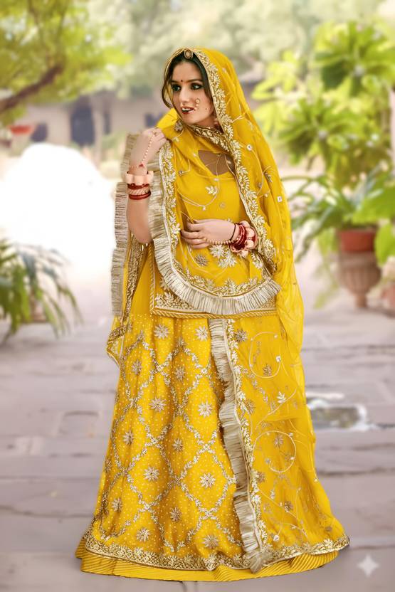 New Pooja Embellished Semi Stitched Rajasthani Poshak  (Yellow)