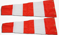 Featuring a cone-shaped structure with a wide opening that tapers to a narrow tip, this windsock indicator flag provides a clear visual indication of airflow direction. Its alternating horizontal stripes enhance visibility from a distance, allowing observers to assess wind movement efficiently. Metal grommets along the large opening offer secure attachment points for poles or supports, ensuring this indicator maintains its intended orientation without sagging.
